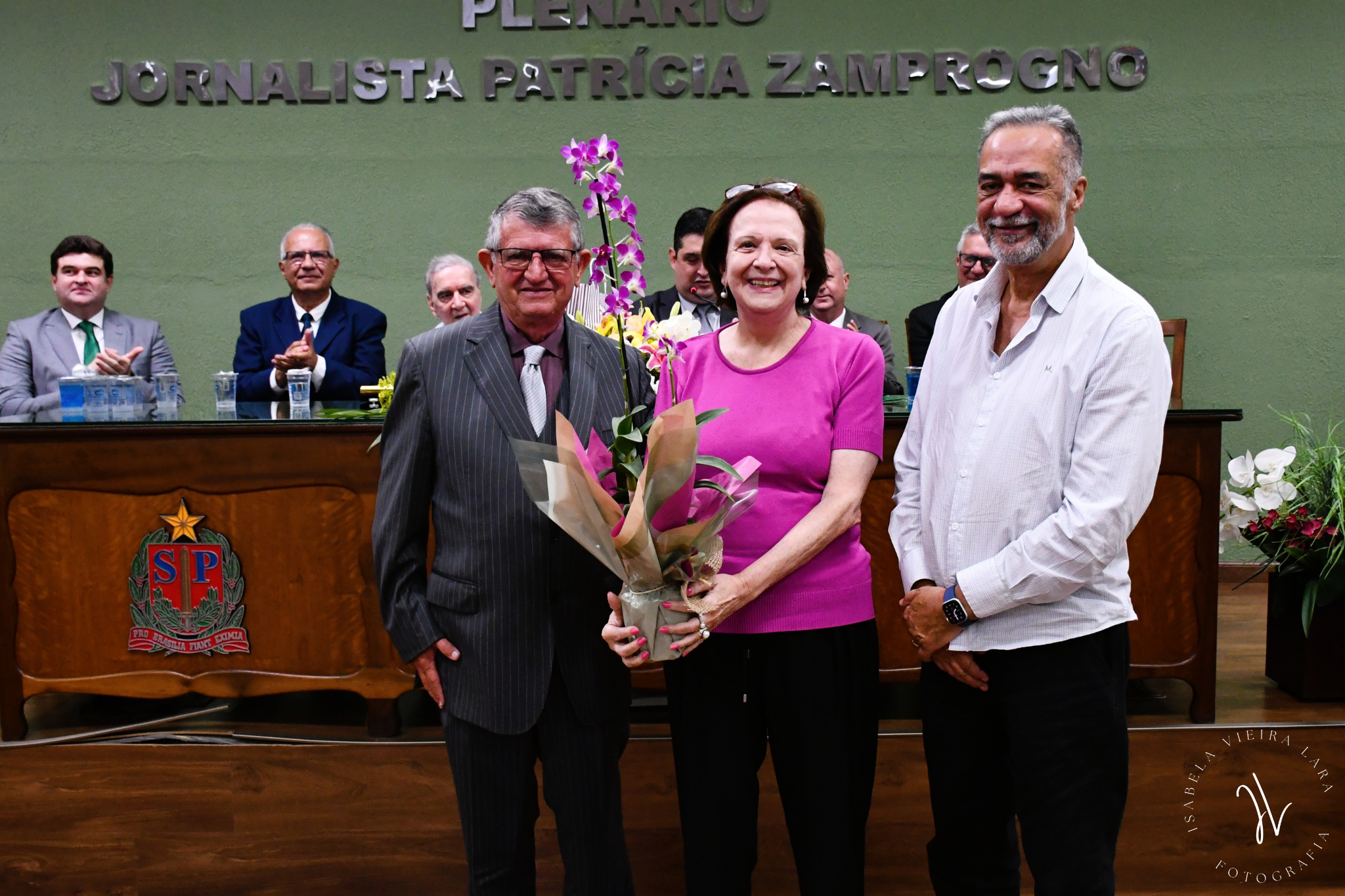 A Sessão Solene contou com a presença do presidente da Câmara Municipal, vereador Verdun; do vice-presidente, Dr. Fábio Gusman Palhares; do vereador Vanderlei Kill; do vereador e autor da propositura, Kleber Alessandro Borotto; do prefeito municipal, Marcelo Simão; do presidente da Ordem dos Advogados do Brasil (OAB) de Santa Rita do Passa Quatro, Dr. Aquiles Zurlo; além do homenageado, Dr. Prof. Luiz Gonzaga Belluzzo, e sua irmã, Rosa Beluzzo.